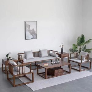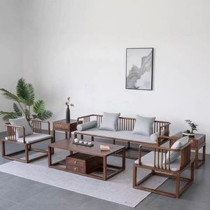 新中式北方榆木实木沙发组合客厅小户型简约布艺沙发现代别墅禅意