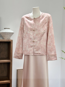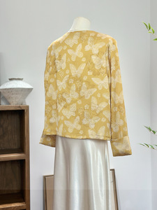 新中式国风圆领盘扣外套女秋季薄款气质清新减龄蝴蝶印花温柔上衣
