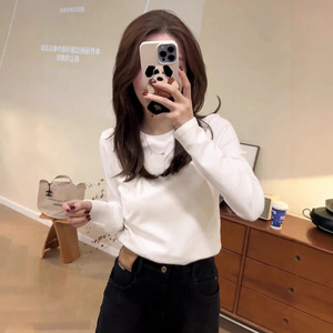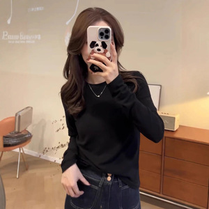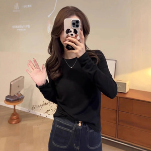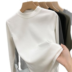 德绒圆领打底衫女可外穿内搭加绒款2025秋冬新款修身纯色长袖上衣