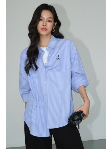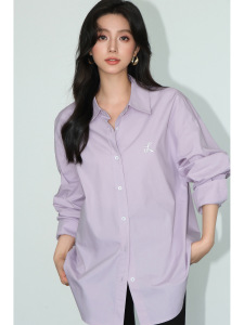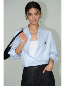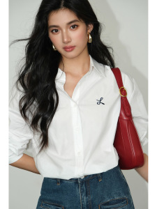NEVA HU 白色长袖衬衫女宽松2025新款刺绣设计感小众韩版百搭衬衣