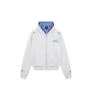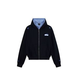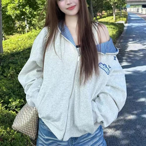 美式复古格子拼接字母刺绣开衫连帽卫衣男女2025新款潮牌情侣外套