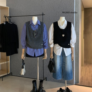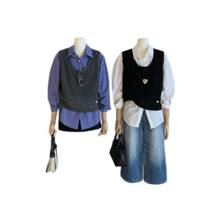 WGWE7134韩系日常百搭通勤舒适马甲背心衬衫套装