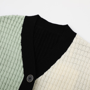 v领设计感撞色毛衣女2025秋季新款条纹镂空针织开衫KSA2510001