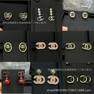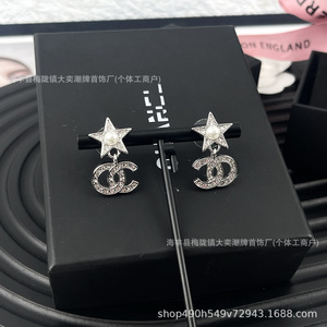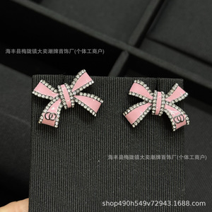 25b新款高版本小香风耳钉女 双C爱心蝴蝶耳环925耳针轻奢高级耳饰