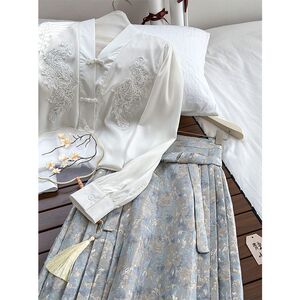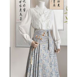 初春穿搭爆款简约《洛阳春光好》小众中式女装马面裙国风衬衫套装