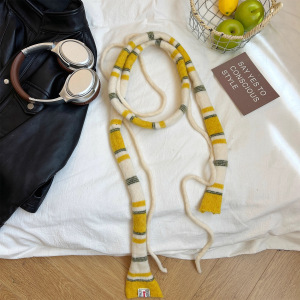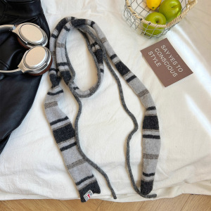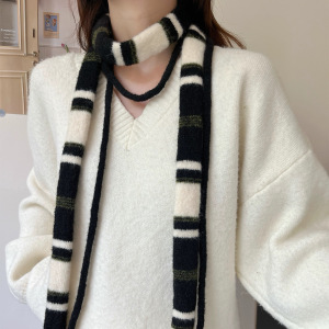韩系小众设计条纹双绳法棍围巾女秋冬季时髦百搭保暖装饰护颈围脖