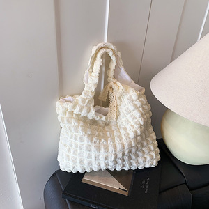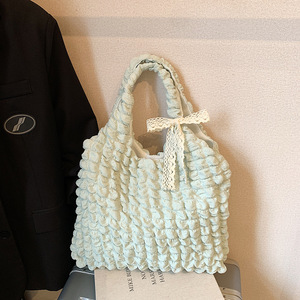 2025洋气云朵褶皱单肩包女学生简约手提包购物袋腋下托特包便当包