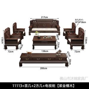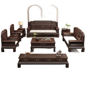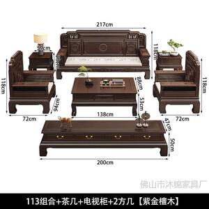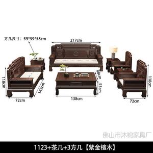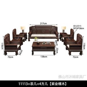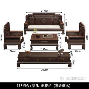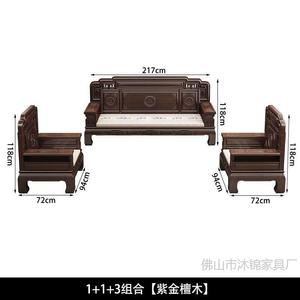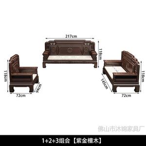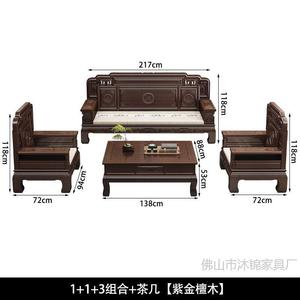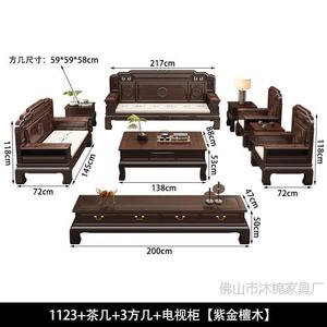 新中式冬夏两用古典家具紫金檀木全实木沙发组合仿古雕花客厅别墅