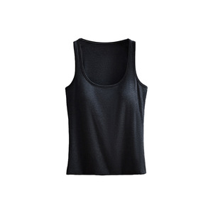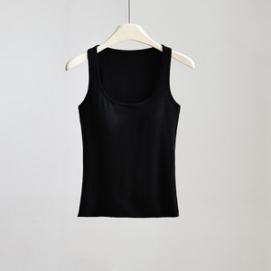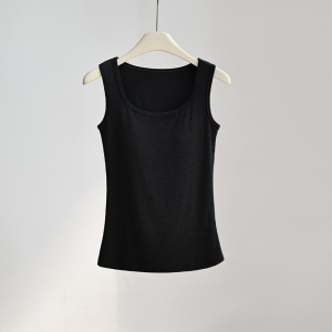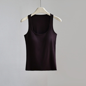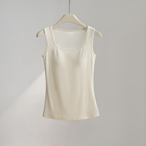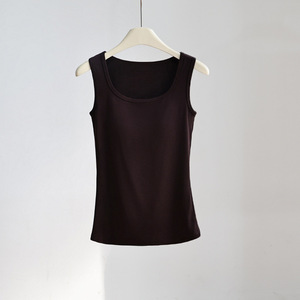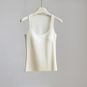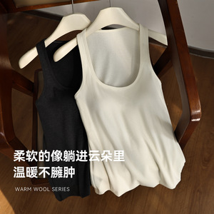 秋冬吊带背心女带胸垫绵羊毛保暖内搭纯色U领打底衫修身无袖上衣