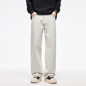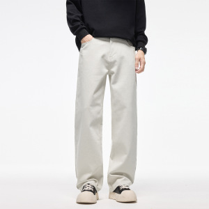 米白色直筒牛仔裤男2025秋季新款美式痞帅阔腿宽松百搭水洗休闲裤