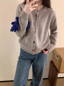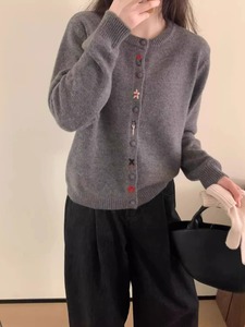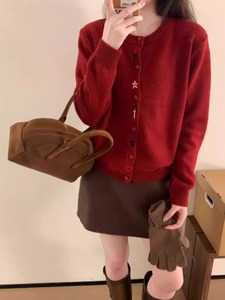 秋装新款针织衫女上衣软糯圆领针织外套温柔休闲百搭毛衣小开衫
