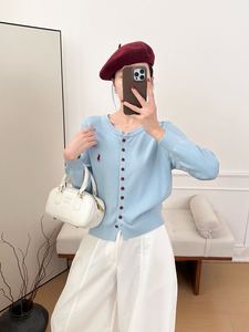 秋季新款女装2025年韩系高级感气质毛衣长袖针织开衫修身外套上衣