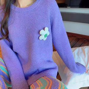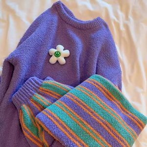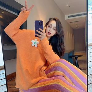 秋冬季珊瑚绒圆领长袖睡衣女加绒加厚网红同款家居服套装ins