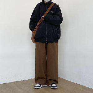 日系复古纯色百搭休闲裤宽松直筒阔腿工装长裤男女潮ins