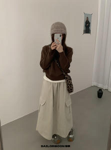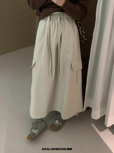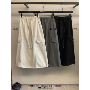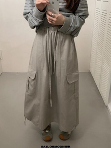 想象SAILORMOON 韩系简约抽绳工装宽松中长款A字裙半身裙女70281