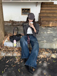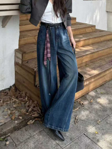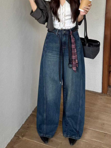 爆犀牛2025秋季新款欧货宽松高腰阔腿牛仔裤女弯刀裤显瘦直筒长裤