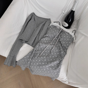 吊带连衣裙+针织开衫两件套套装