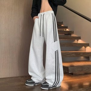 外贸新款美式卫裤男休闲男条纹裤子男士青少年百搭宽松直筒运动裤