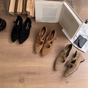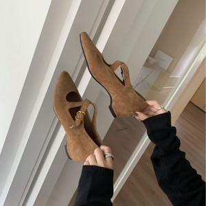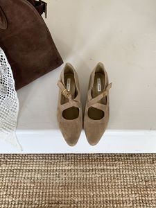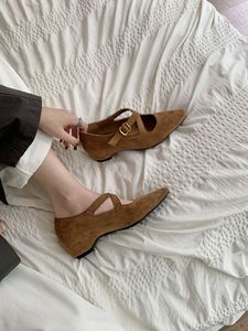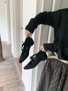 2025年秋冬新款法式复古玛丽珍鞋女外穿尖头绒面交叉扣带粗跟单鞋