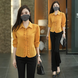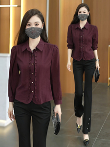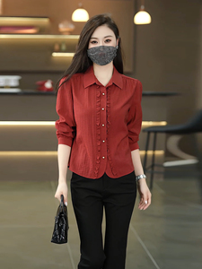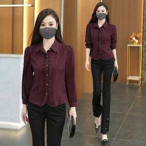 时尚木耳花边长袖衬衫女2025早秋新款洋气显瘦遮肚小个子百搭上衣