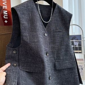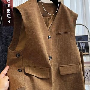 ins独特别致高级V领短款西装马甲背心外套春秋无袖上衣卡其色黑色
