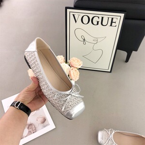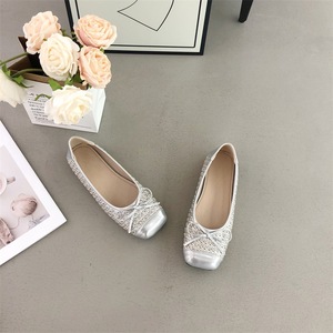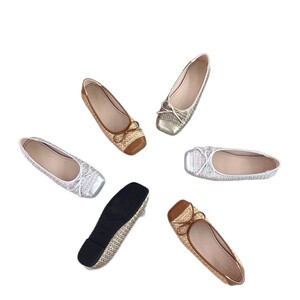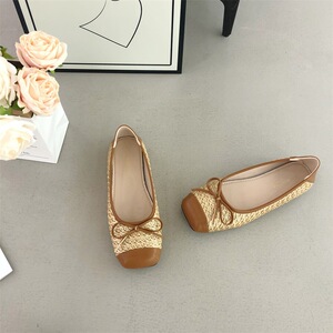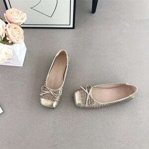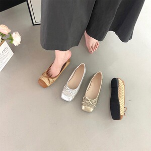 蝴蝶结方头单鞋时尚拼色平跟女鞋2025春新款韩版浅口懒人鞋豆豆鞋