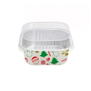跨境新款圣诞节烘焙铝箔盒多尺寸圣诞派对打包盒耐高温加厚包装盒
