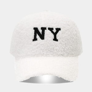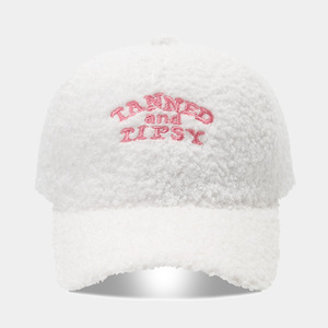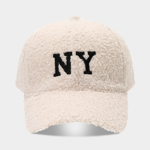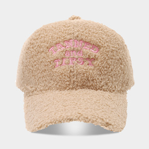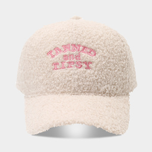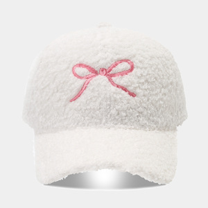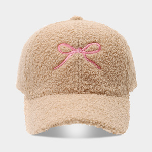 鸭舌帽女秋冬季羊羔绒保暖帽子时尚蝴蝶结刺绣泰迪绒显脸小棒球帽