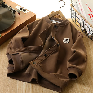 男童外套2025外贸复古美式上衣秋冬舒适男孩棒球领休闲夹克外套潮