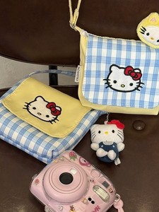 日系ins格子可爱kitty猫单肩包卡通甜美斜挎包时尚简约百搭背包女