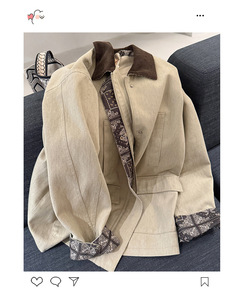 复古撞色拼接翻领风衣外套女秋季新款高级感气质宽松百搭夹克上衣