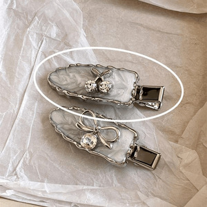 银灰色水钻蝴蝶结鸭嘴夹-1个