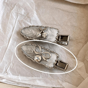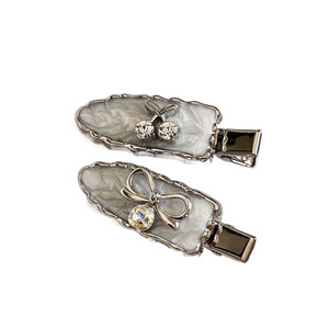 【水钻点缀】尊嘟好洋气!银灰色水钻樱桃蝴蝶结鸭嘴夹刘海侧边夹