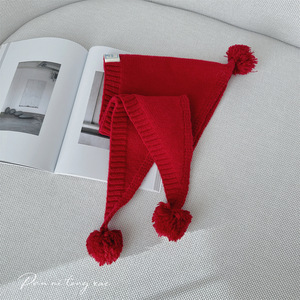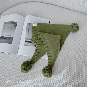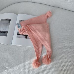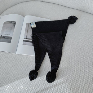 新款韩系秋冬毛球针织三角巾男女童带标可爱百搭保暖毛线围脖