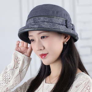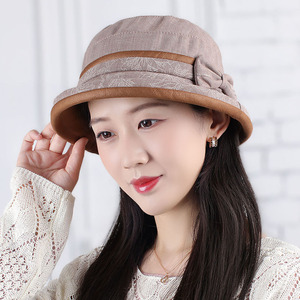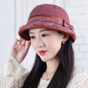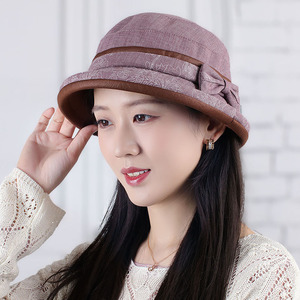 2025年秋季上新卷边撞色拼花圆平顶礼帽显年轻渔夫帽妈妈盆帽布帽