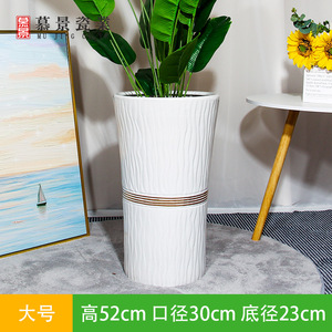 陶瓷花盆大口径简约特大号阳台家用落地绿植轻奢感视泡