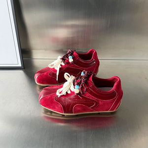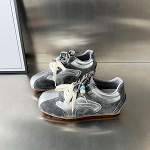 真皮超火真皮撞色鞋带德训鞋女2025秋新款内增高休闲鞋运动阿甘鞋