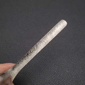 纯钛元宝锤纹方柄勺酒店商用餐厅通用调羹勺甜品勺喝汤干饭长柄勺