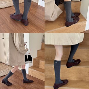 IOULOR秋冬韩系小腿袜带字母标休闲纯色有氧棉堆堆袜诸暨袜子批发