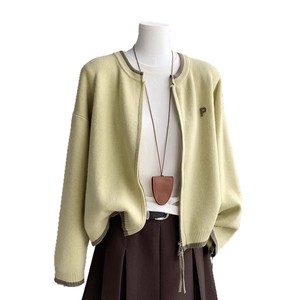 慵懒风宽松双拉链针织开衫女2025秋冬季新款纯色软糯刺绣毛衣外套