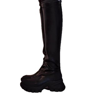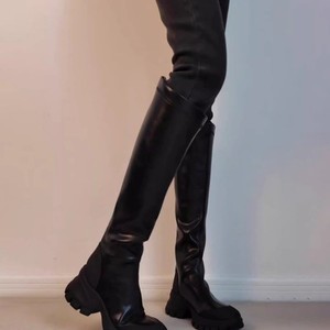 软皮版~瘦瘦靴女粗跟厚底骑士靴高筒马丁靴显瘦不过膝百搭小众款