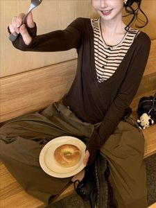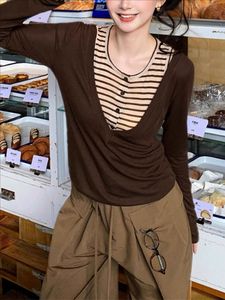 韩系chic别致设计感假两件条纹T恤女秋季高级小众不撞衫长袖上衣