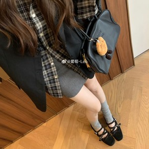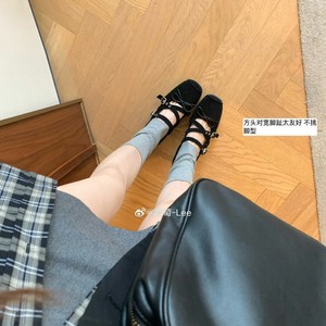 羊皮版~葡萄妈内增高4cm芭蕾平底单鞋女方头浅口交叉扣带玛丽珍鞋
