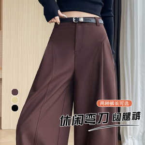 卡其色潮流侧压褶阔腿裤显瘦2025秋季新款宽松阔腿裤时尚女裤子