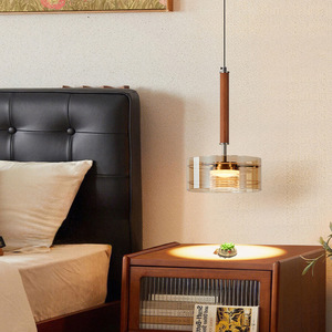 餐厅吊灯侘寂风餐桌饭厅日式原木吧台中古风餐厅悬浮升降三头吊灯