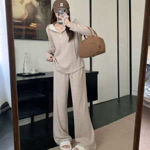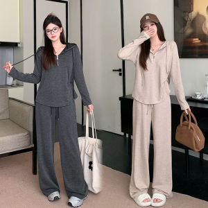 休闲运动服套装女秋新款慵懒风宽松显瘦连帽卫衣时尚阔腿裤两件套