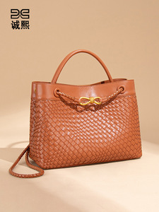 亚马逊新款金扣女包手工编织包通勤百搭手提包时尚休闲单肩斜挎包