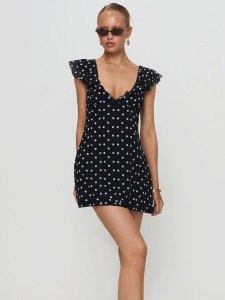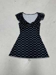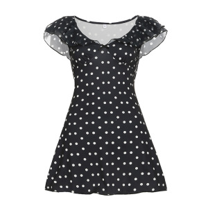 法式V领小飞袖A摆波点收腰连衣裙新款跨境修身显瘦优雅气质短裙