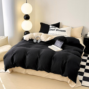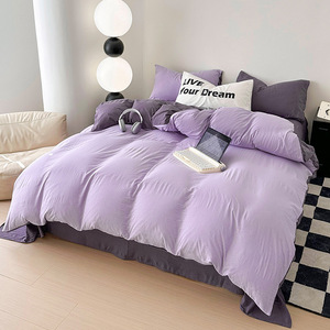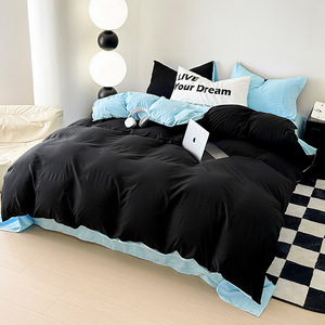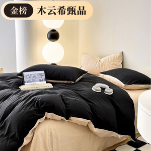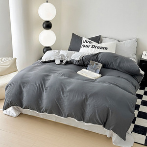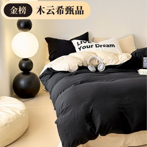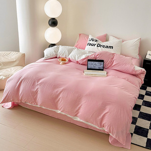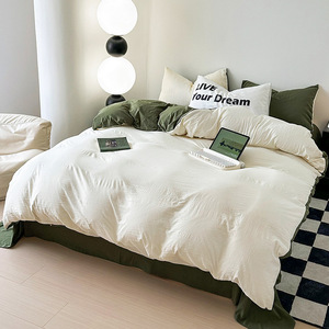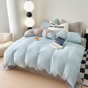 ins双拼简约超软水洗棉纯色四件套单双人学生宿舍三件套被套床单