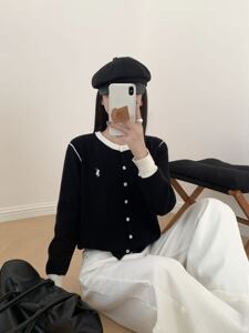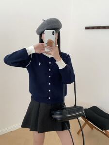 2025年秋季新款女装韩系针织开衫上衣气质圆领设计感长袖毛衣外套